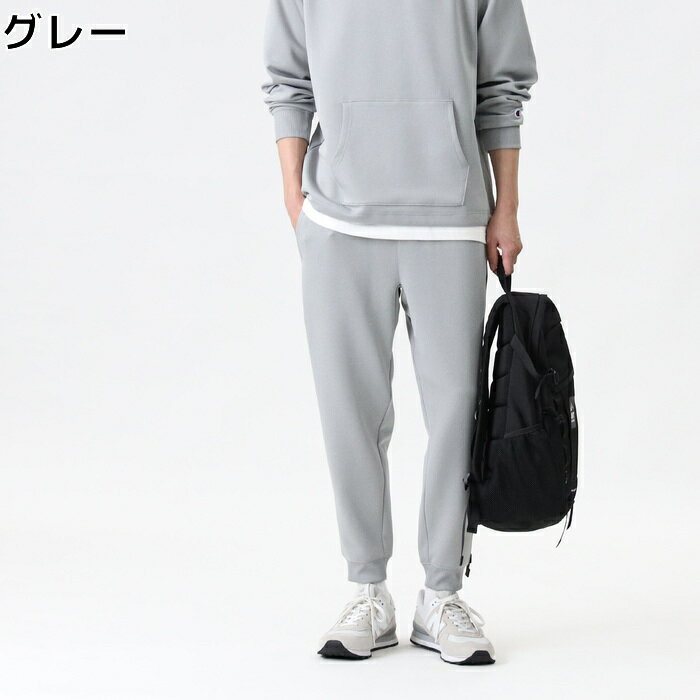 モデル:H:183cm B:87cm W:74cm H:94cm 着用サイズ:L M:股下63cm、ウエスト(実寸)76cm、ヒップ51.5cm、わたり31cm、裾幅15cm、股上-cmL:股下65cm、ウエスト(実寸)80cm、ヒップ53.5cm、わたり32cm、裾幅15.5cm、股上-cmXL:股下67cm、ウエスト(実寸)84cm、ヒップ55.5cm、わたり33cm、裾幅16cm、股上-cm 本体:ポリエステル90%、ポリウレタン10%、リブ部分:ポリエステル97%、ポリウレタン3% 中国製 ChampionChampion 「FREETEX」トラックジャージパンツ/セットアップ対応 Point別売りのクルーネックロングスリーブTシャツ (品番:C8-US001R)と合わせてセットアップにも◎ Point別売りのクルーネックロングスリーブTシャツ (品番:C8-US101R)と合わせてセットアップにも◎ Pointしっかりストレッチも効くので激しい運動にもしっかり対応 Point肌面にディンプル面を持たせることでべたつきをを抑え快適な肌触り Other image ワンマイル、アクティブシーンに最適なChampionのトラックジャージパンツ。