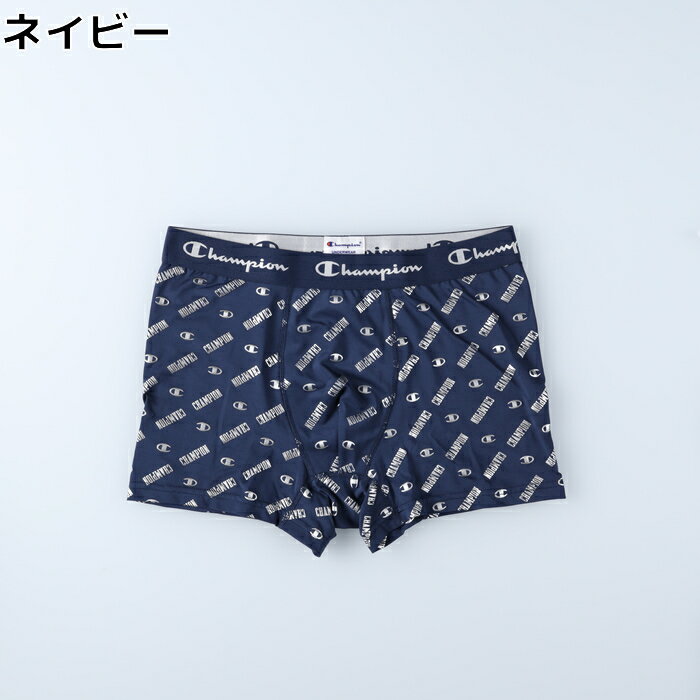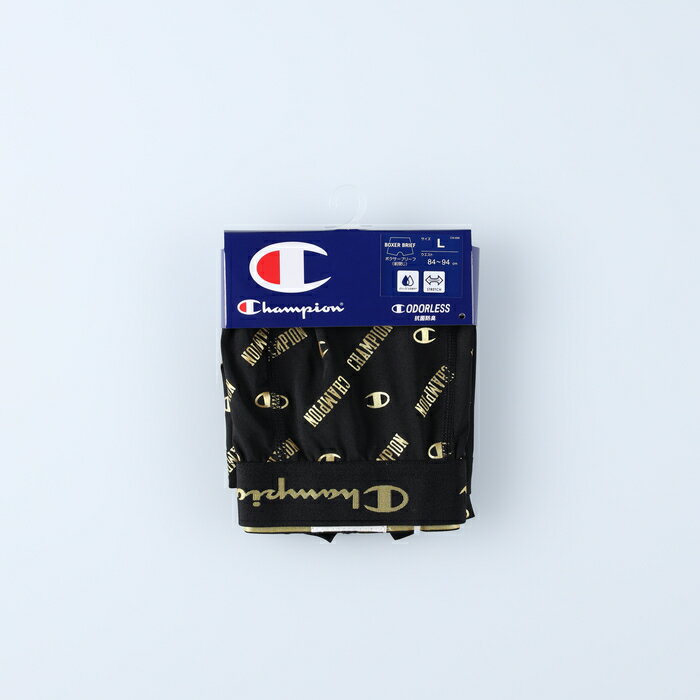 【デザイン】Champion(チャンピオン)ロゴを全周に配置した光沢感のあるウエストゴム仕様で、全面にCロゴとCHAMPIONのグラフィックを光沢感のある総柄プリントで入れています。