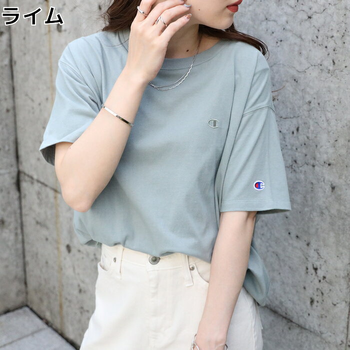 Champion ワンポイント無地Tシャツ チャンピオン トップス Tシャツ 半袖 夏 シンプル ゆったり ビックシルエット レディース 体型カバーRight-on ライトオン CWST301R Champion チャンピオン