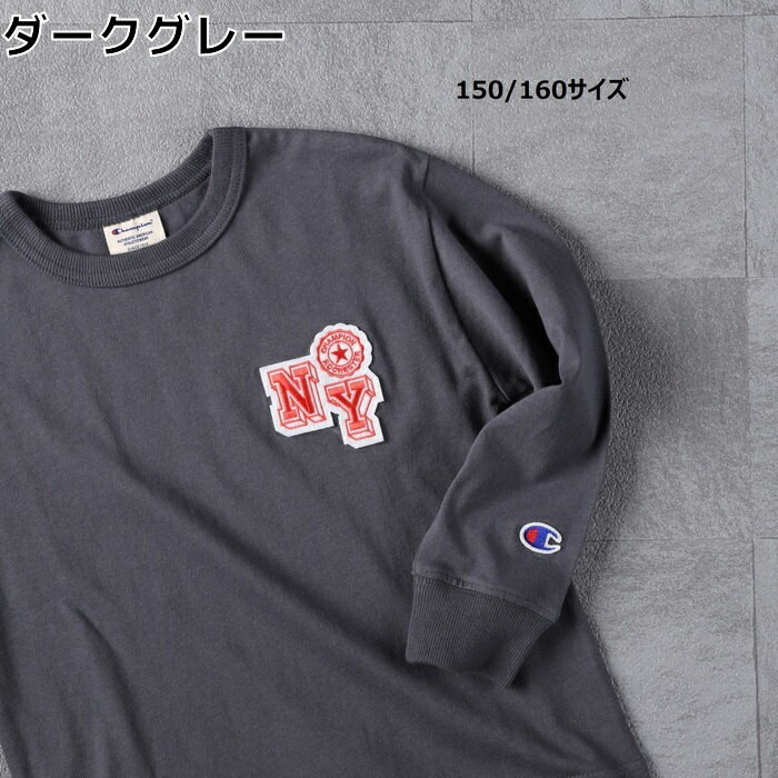 Champion カレッジロンT キッズ Tシャツ tシャツ ロンT 長袖 春 秋 冬 男の子 女の子 子供 子ども 人気 かわいい かっこいい Other image 【デザイン】 胸元にカレッジワッペンが施されたロンT。