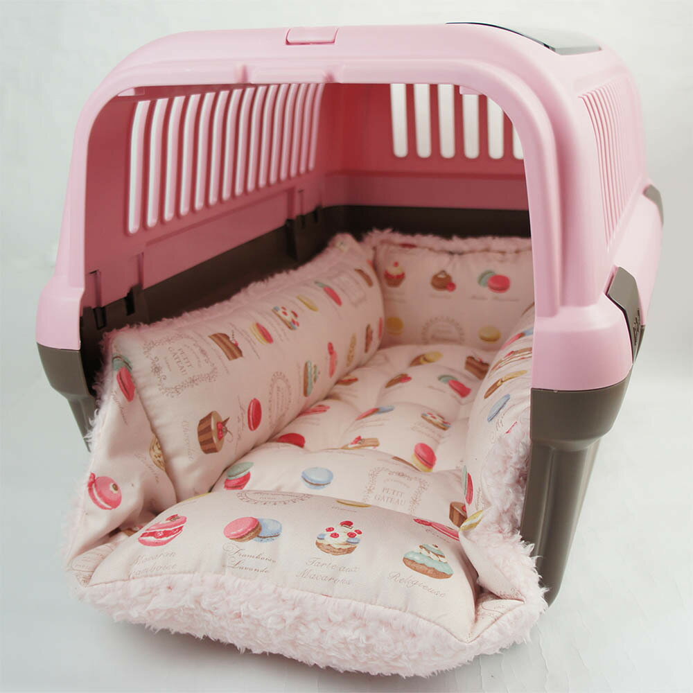 ペットが喜ぶ キャリー クッション ベッド マカロンシャービーピンクファー Mサイズ / ヘレンズ ペットベッド 犬 猫 キャンピング ペット クレートマット クレートクッション クレートベッド ベッド+クッション+カフェマット、3WAYで使えます! YUWAマカロン人気色のピンクです。