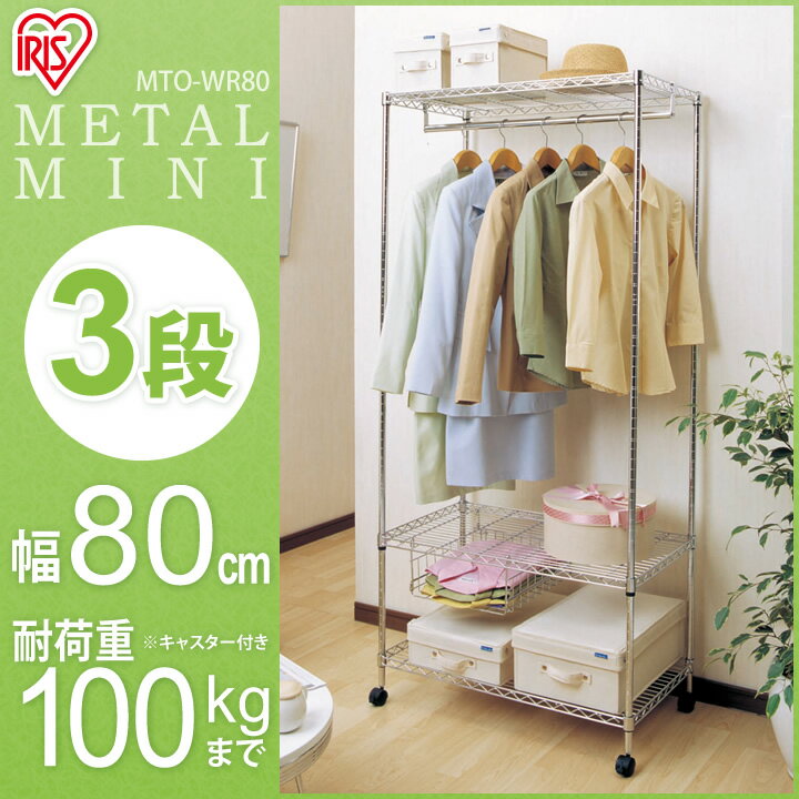 収納棚 収納 アイリスオーヤマ ワードローブ メタルラック 幅80 キャスター付き MTO-WR80ラック シェルフ 棚 メタル スチールラック メタルシェルフ スチールシェルフ 衣類収納 衣替え オフィス リビング キッチン クローゼット 子供部屋