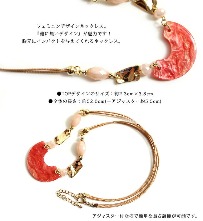 フェミニン ユニーク デザイン ショート 紐 ネックレス ひも 樹脂 ゴールド ピンク 桃色 アジャスター付き ma