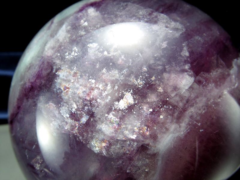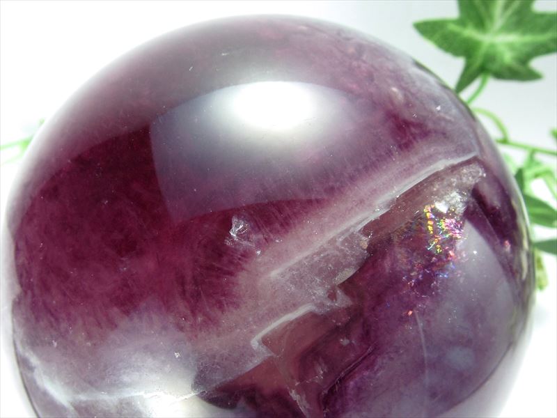 ●虹入り【バイカラーフローライト 丸玉 台座付き】直径約84mm 重さ約984g グリーン・パープルフローライト 天才の石 つやつや光沢 一点物【蛍石】sai
