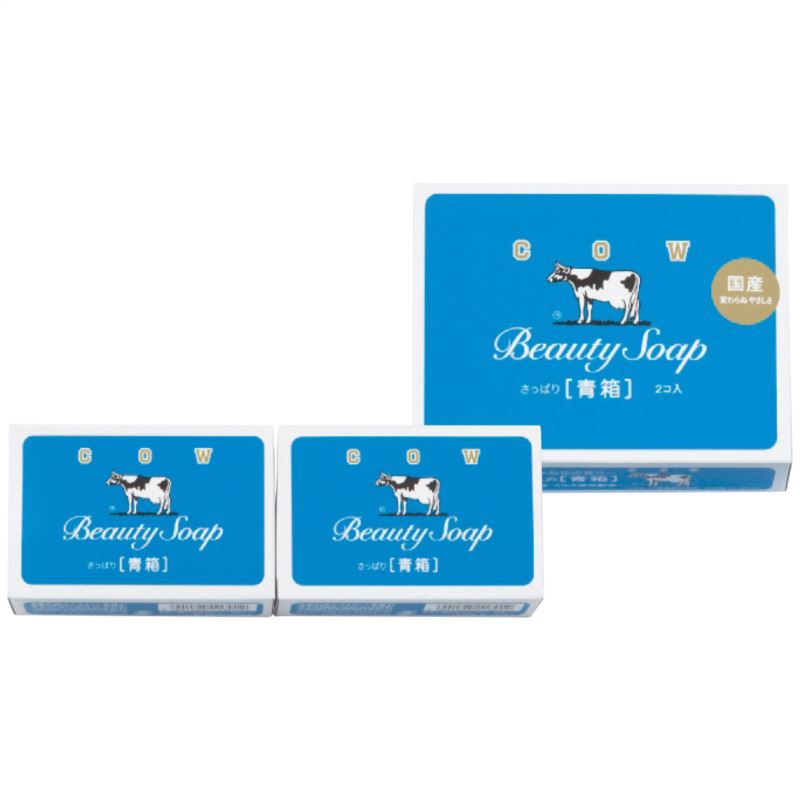 牛乳石鹸 青箱2コ入 【販促品 ノベルティグッズ 日用品 消耗品 有名 ぎゅうにゅうせっけん 牛 青い箱 お風呂 バス用品 固形石鹸】[tr]