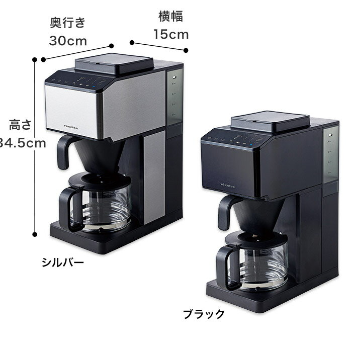 Size & Color 商品名 recolte レコルト Grind & Brew Coffee Maker コーン式全自動コーヒーメーカー RCD-1 カラー シルバー ブラック サイズ 約 幅15 × 奥行き30 × 高さ34.5cm 重量 重量 : 約3.4kg 電圧 100V 50/60Hz 消費電力 コーヒーメーカー:730W コーヒーミル:100W (定格時間:20秒) 水タンク容量 560ml 豆タンク容量 60g 主材料 本体:ABS 樹脂 コード長 約 1.0m 保証 お買い上げ日より本体1年間 recolte(レコルト)シリーズは こちら キッチン家電 ランキング
