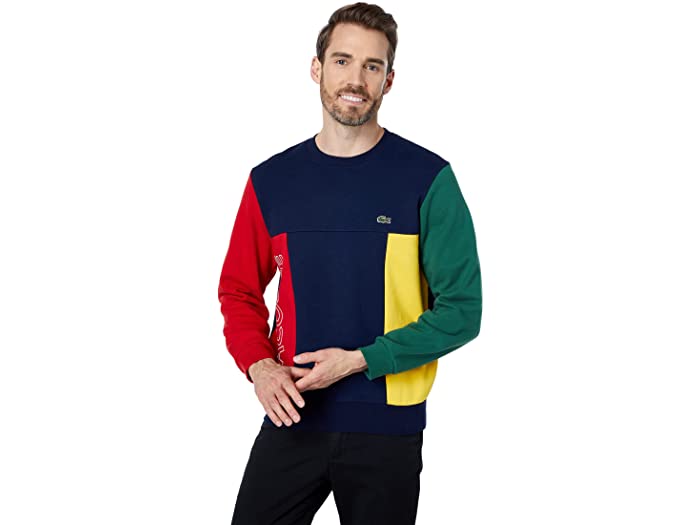 (取寄) ラコステ メンズ ロング スリーブ カラーブロックト スウェットシャツ ウィズ オン フロント Lacoste men Long Sleeve Color-Blocked Sweatshirt with On Front Navy Blue/Red/Green/Broom