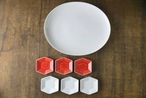 同じシリーズのアイテムはこちら縁起の良いモチーフを器に見立て、華やかな紅白の色合いで仕上げた六種の贈りもの。