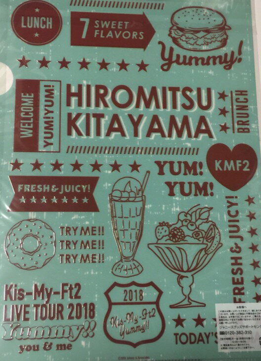 【新品】 Kis-My-FT2 (キスマイ)・・【クリアファイル】・北山宏光・5大ドームツアー 2018「Kis-My-Ft2 LIVE TOUR 2018 Yummy!!you&me」☆最新コンサート会場販売・