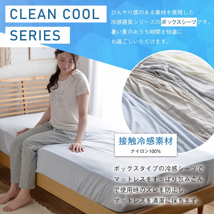 接触冷感 ボックスシーツ セミダブル 洗える ひんやりマット ベッドシーツ CLEAN COOL クリーンクール ボックスシーツ 約120×200×30cm マットレスカバー BOXシーツ 布団カバー マットレス用 夏用 冷たい