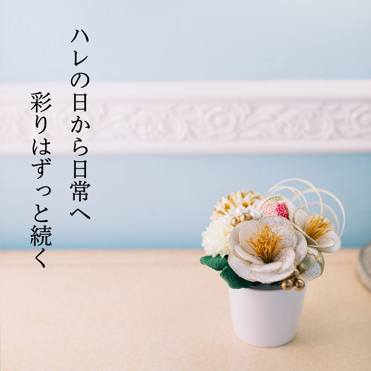 【商品内容】 ・大花×1 花径6.5cm ・小花×1 花径5cm ・マム大×1 花径6cm ・マム中×1 花径5cm ・ちりめん玉大×1 玉径4cm ・ちりめん玉中×1 玉径3cm ・水引×2 輪径6cm ・葉×2 縦幅3.5cm、横幅3cm ・実玉5粒×1 玉径1cm ・実玉3粒×1 玉径1cm ・タッセル×1 長さ7.5cm 【素材】 ポリエステル、レーヨン、綿、樹脂、水引、鉄、陶器 【注意事項】 一つ一つ手作りのため、商品によって配置やサイズが若干前後する場合がございます。