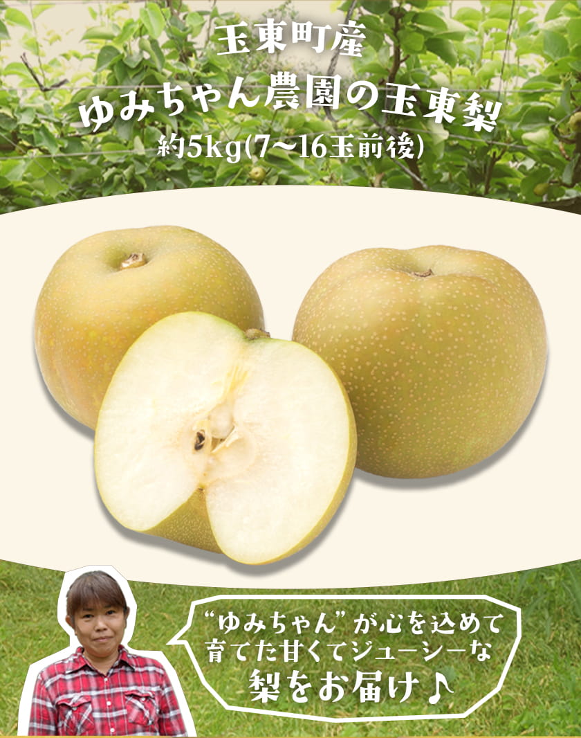名称 梨 産地 熊本県玉東町 内容量 梨 約5kg(7〜16玉前後) 配送方法 冷蔵便でお届けします。