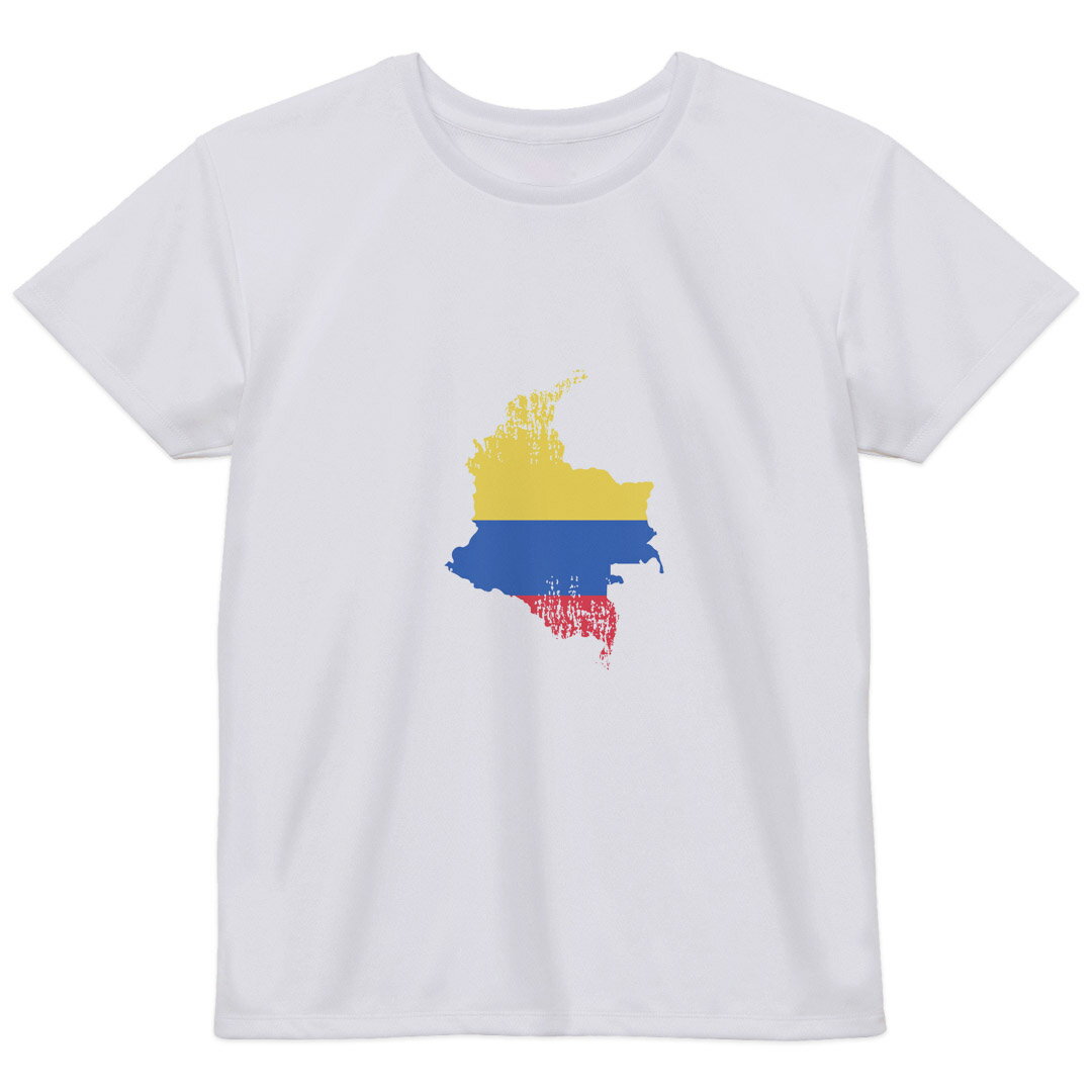 レディース ドライTシャツ ホワイト 半袖 4.1オンス ジム トレーニング スポーツ 運動会 ドライアスレチック UVカット 紫外線遮蔽 吸水速乾 デザイン Tshirt M L 国旗 colombia コロンビア 018799