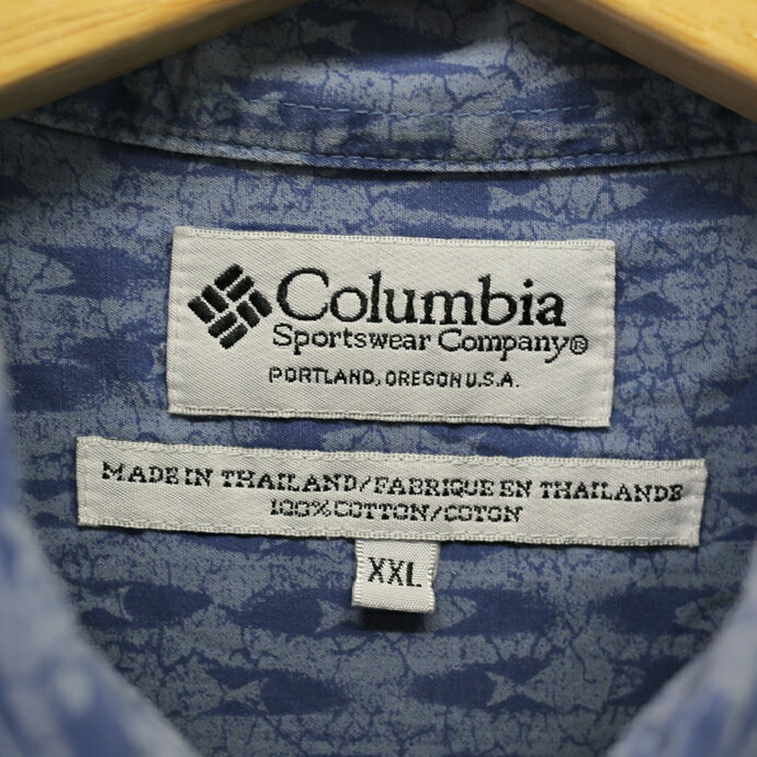 コロンビア Columbia 半袖 BDシャツ メンズXXLサイズ ブルー 総柄 ユーズド 古着 t200518-108