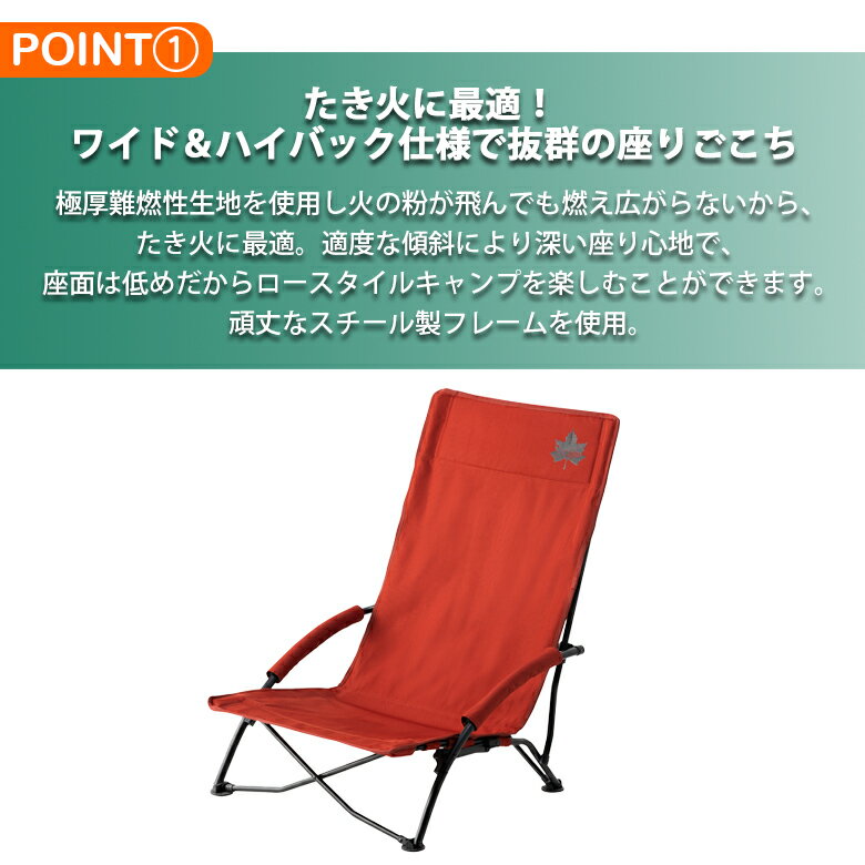 火の粉が飛んできても燃え広がらない ・囲炉裏テーブルを囲む『丁度良い』サイズ ・ワイド・ハイバックタイプのあぐらチェア ・収納バッグ付き 【備考】 ※全ての製品は予告なく仕様を変更する場合があります。