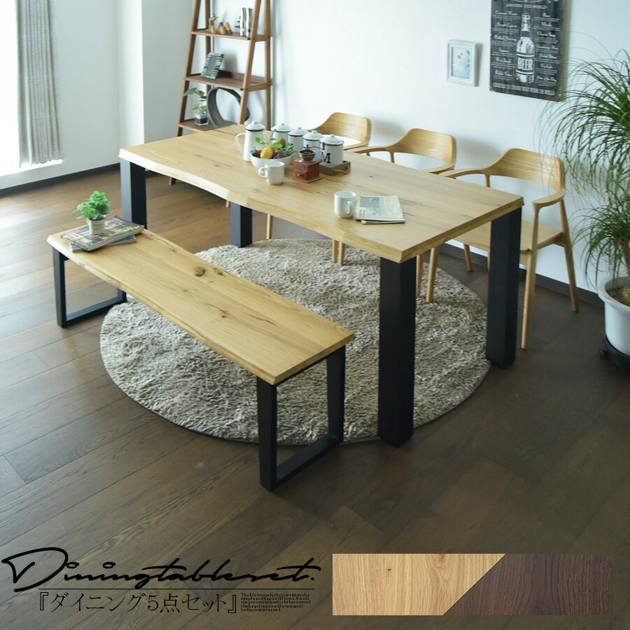 * ダイニングテーブルセット ベンチ 6人掛け ダイニングテーブル 5点セット 幅180cm ダイニングセット 6人用 食卓セット テーブルセット ウォールナット オーク ブラウン ナチュラル シンプル モダン オシャレ 北欧風 キズ・汚れに強い 木製 ブラック