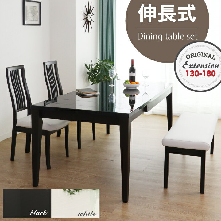ダイニングテーブルセット 伸長式 伸長テーブル 4点 幅130 幅180 ホワイト ブラック 木製 木目 鏡面 / 白 シンプル おしゃれ 高級 モダン ダイニングセット 食卓セット 長方形 人気 安い 送料無料 sf-0109