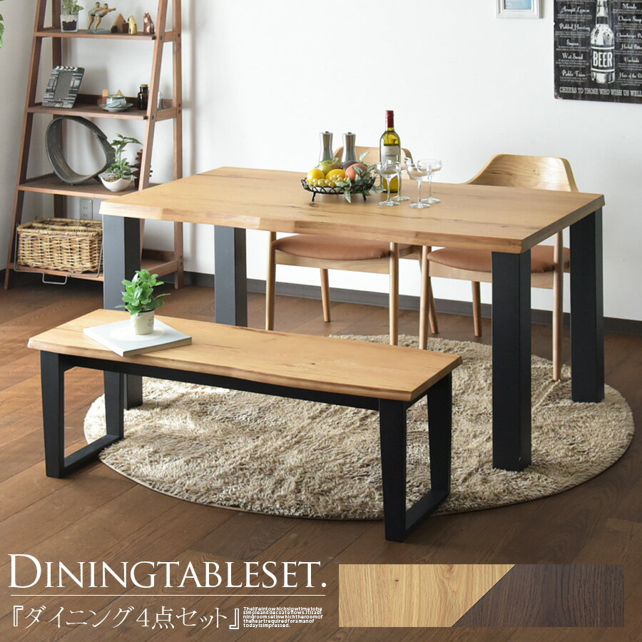 * ダイニングテーブルセット 4人掛け ベンチ ダイニングテーブル 4点セット 幅150cm ダイニングセット 4人用 食卓セット テーブルセット ウォールナット オーク ブラウン ナチュラル シンプル モダン オシャレ 北欧風 キズ・汚れに強い 木製 ブラック