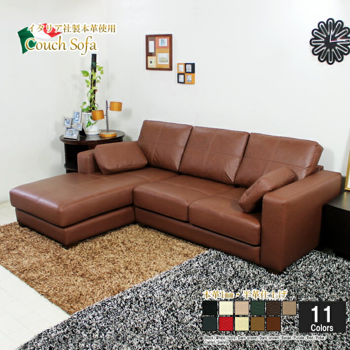 [搬入設置無料] ソファー カウチソファ ソファ 3人掛け ローソファー シェーズロング 総革 本革 本皮 レザー L字 脚取り外し可 シンプル そふぁ Sバネ 高密度ウレタン サステナブル イタリア社製ブランド革 ダークブラウン 茶等 14色対応 938sp-all-2p-couch [幅220cm]