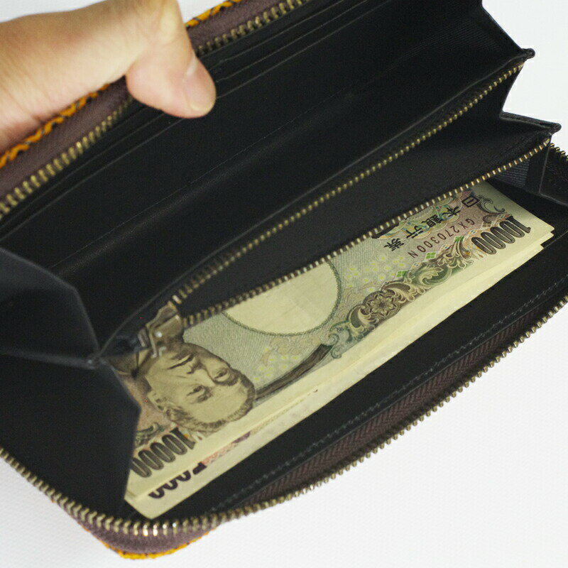 本物にこだわり、和柄を漆でプリント、高級感を出したコレクション カラー09:ブラック 54:オレンジ 68:プラムブラウン 素材牛革(グラブ革)(スムース) 原産国日本製 発売シーズン2019年春夏 ■漆プリント ※製品にならなかった革使用のため色むらやしわがあります。
