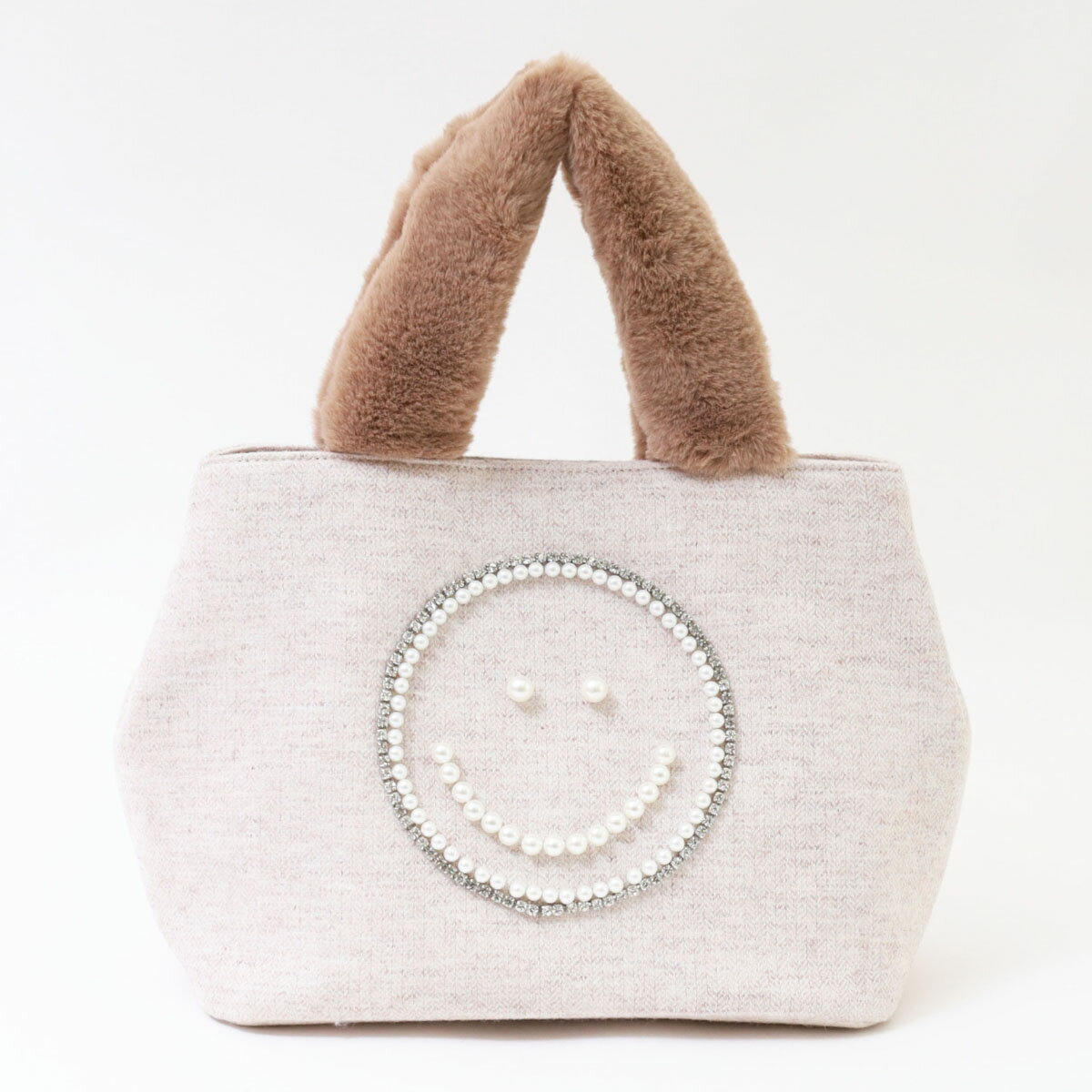 【COOCO(クーコ)】SMILEY/パール刺繍xエコファーハンドルトートバッグ/クーコ(cooco)