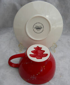 2 STARBUCKS COFFEE CUP SAUCER SETS HOLIDAY 2006 CHRISTMAS TREE RED 12 OZスターバックスコーヒーカップソーサーセットホリデークリスマスツリーレッドオンス※注意※NYからの配送になりますので2週間前後お時間をいただきます。