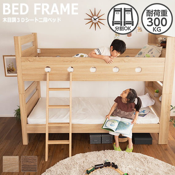 木目調3Dシート二段ベッド宮付き【COCCO-コッコ-】 北海道沖縄離島は配送料追加