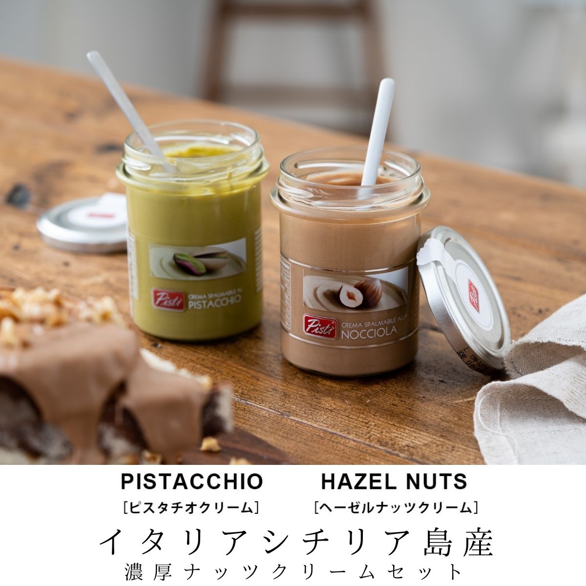 Pisti ピスタチオクリーム プレゼント ホワイトデー お返し 送料無料 ギフト ピスタチオクリーム&ヘーゼルナッツ クリーム 各200g ギフトセット おしゃれ イタリア輸入食品 朝食 スイーツ ジャム クリーム 2種セット お菓子 材料 イタリア ナッツクリーム