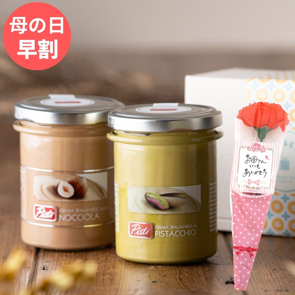 敬老の日 残暑見舞い ギフト 送料無料 Pisti ピスティ ピスタチオクリーム&ヘーゼルナッツクリームセット(あす楽)/ イタリア・シチリア島産 防腐剤・香料不使用 グルメ ギフトセット 内祝い お返し 出産内祝い 詰合せ 写真入り メッセージカード 可