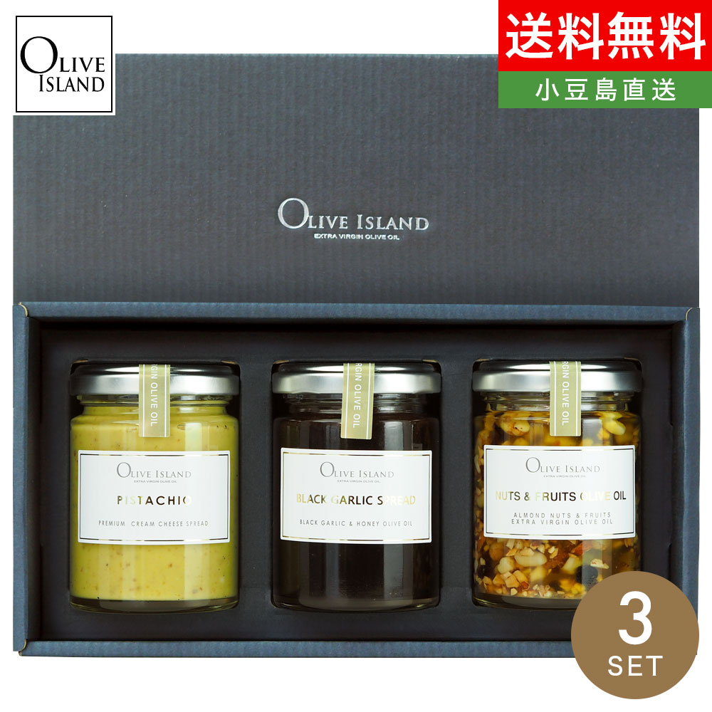 調味料ギフト 黒にんにくスプレッド120g・ピスタチオクリームチーズ110g・ナッツ&フルーツオイル100g 計3個セット/ギフトBOX入り 送料無料国産 オリーブオイル 無添加 調味料 詰め合わせ 小豆島 オリーブアイランド oliveisland お中元 御中元 夏ギフト おすすめ