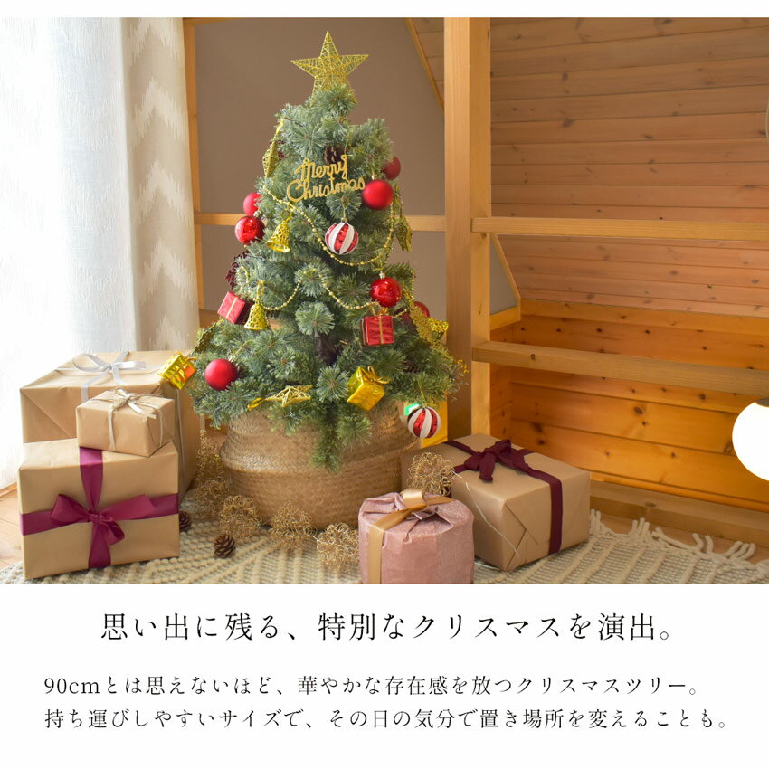 クーポンで100円OFF☆ジュールレンケリ クリスマスツリー 北欧風 クリスマスツリーセット 90cm Xmas tree ショップ用 店舗用 法人用 オーナメント オーナメントセット かわいい LED ライト ボール ギフトボックス エンブレム スター 星 雪結晶 ベル